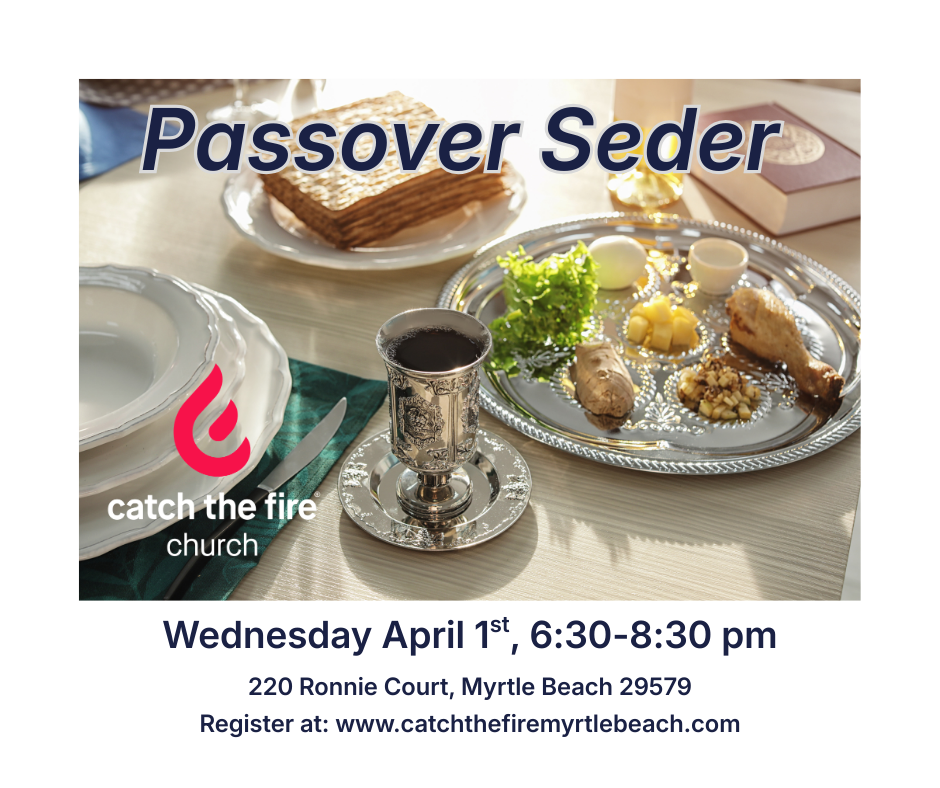 Come encounter the beauty of redemption in the elements of the Passover Seder. Join us at Catch the Fire Myrtle Beach for a powerful Messianic Passover experience where Yeshua (Jesus) is revealed in the symbols, the story, and the table. You are invited to taste and see, and to remember the faithfulness of Yahweh as His Spirit brings fresh revelation to your heart.
